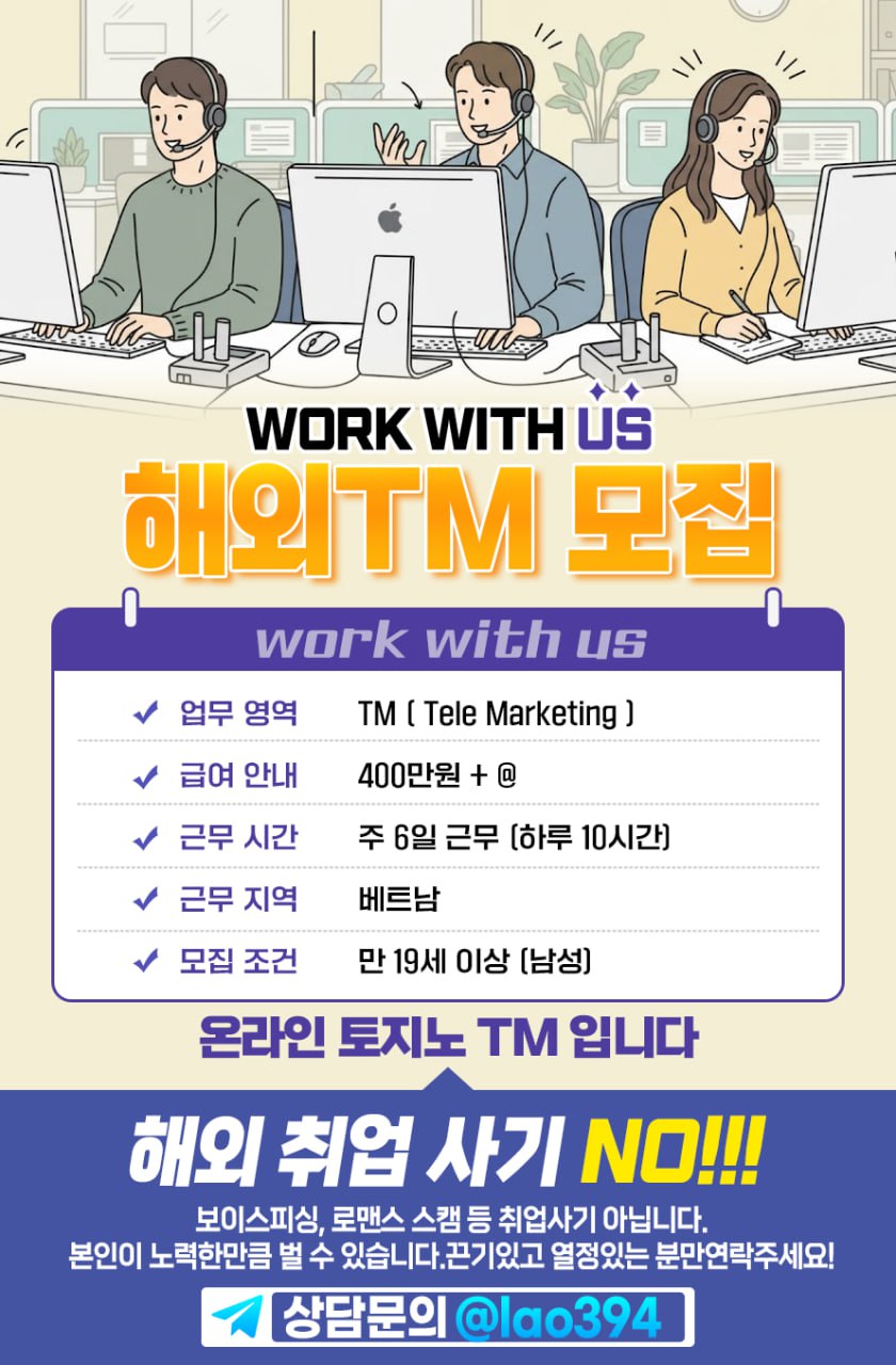 New ✅정규직 TM·상담직 채용 공고✅문의 : @han56322